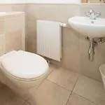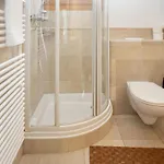Badkamervoorzieningen omvatten een douche en een badkuip.